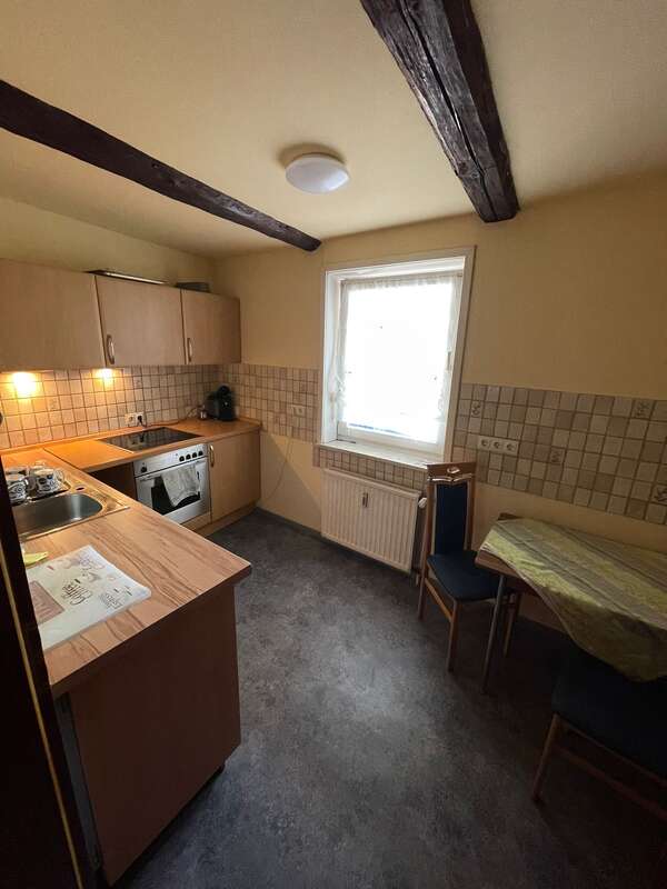 Einbauküche, gemeinschaftliche Nutzung, mit Sitz- und Essmöglichkeit